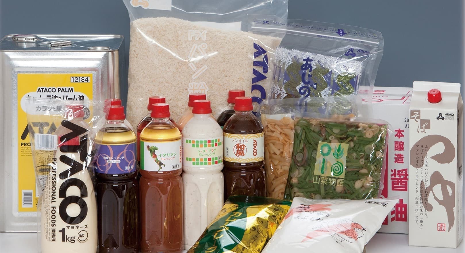 調味料等の業務用食材をはじめとして、ATACO独自のオリジナルブランドを開発しています。料理のプロから学んだノウハウ、厳しい要望を生かし、風味はもちろん、添加物を控えた健康的で理想的な逸品としてお届けします。