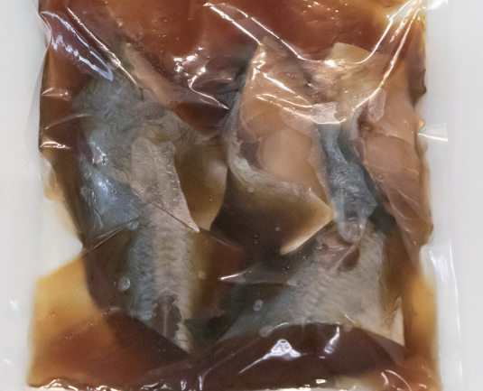 照りツヤがよくしっかりと味のしみ込んだ煮魚に仕上がる醤油ベースのタレです。ボイルするだけで簡単に調理できる商品です。